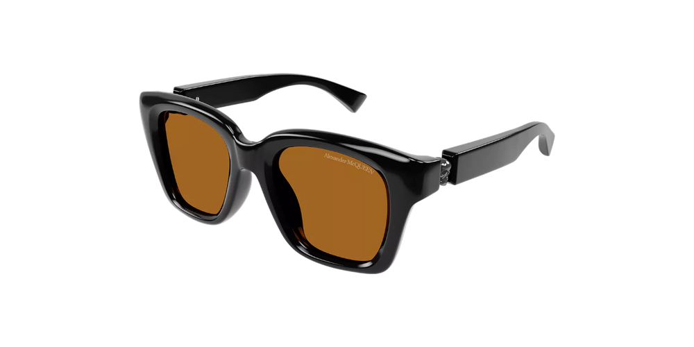 Las Alexander McQueen AM0432SA combinan un diseño cuadrado audaz con una montura de acetato negro de alto brillo y lentes color ámbar que aportan un contraste moderno y lleno de carácter. Su construcción gruesa, líneas definidas y presencia escultórica reflejan la estética inconfundible de la marca: lujo contemporáneo con un toque rebelde.