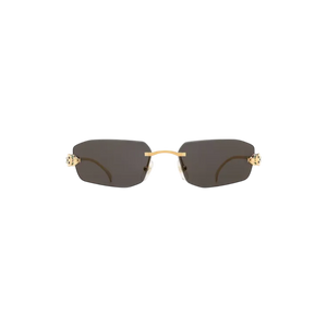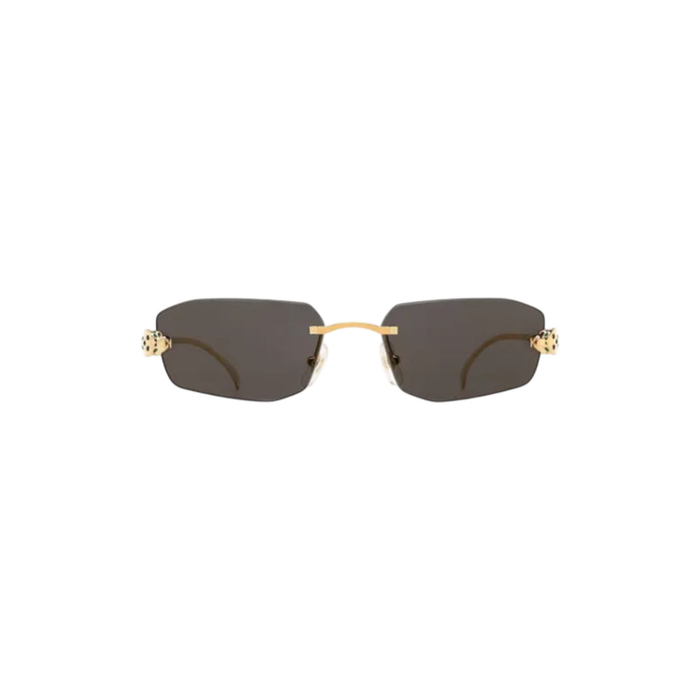 Las gafas de sol Cartier modelo CT0474S presentan un diseño sin montura con una construcción moderna y vanguardista. Destacan por la incorporación de una cabeza de pantera tridimensional en el frontal, símbolo emblemático de la marca, que aporta un aspecto fuerte y unisex. Las varillas metálicas evocan la cabeza y la cola de la pantera, adornadas con detalles de esmalte hechos a mano, realzando su carácter distintivo.