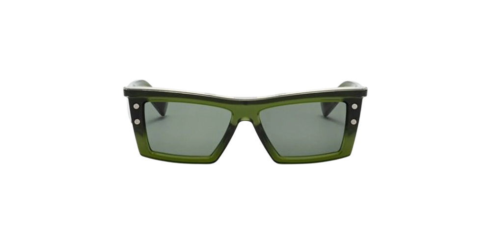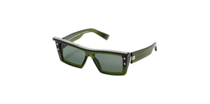 Diseñadas con la estética de lujo parisina, las Balmain B-VII BPS-131B-55 presentan una montura rectangular de acetato en verde translúcido, con un acabado audaz y sofisticado. Sus lentes en tono verde aseguran protección solar total y un estilo distintivo que se adapta tanto a looks casuales como elegantes.