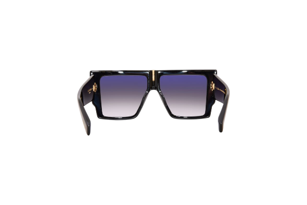 Las Balmain BPS-144A 57 son gafas de sol de estilo audaz y sofisticado. Su montura negra en acetato con detalles dorados resalta un diseño moderno y lujoso. Las lentes grises degradadas aportan elegancia y protección, adaptándose a diferentes ocasiones.