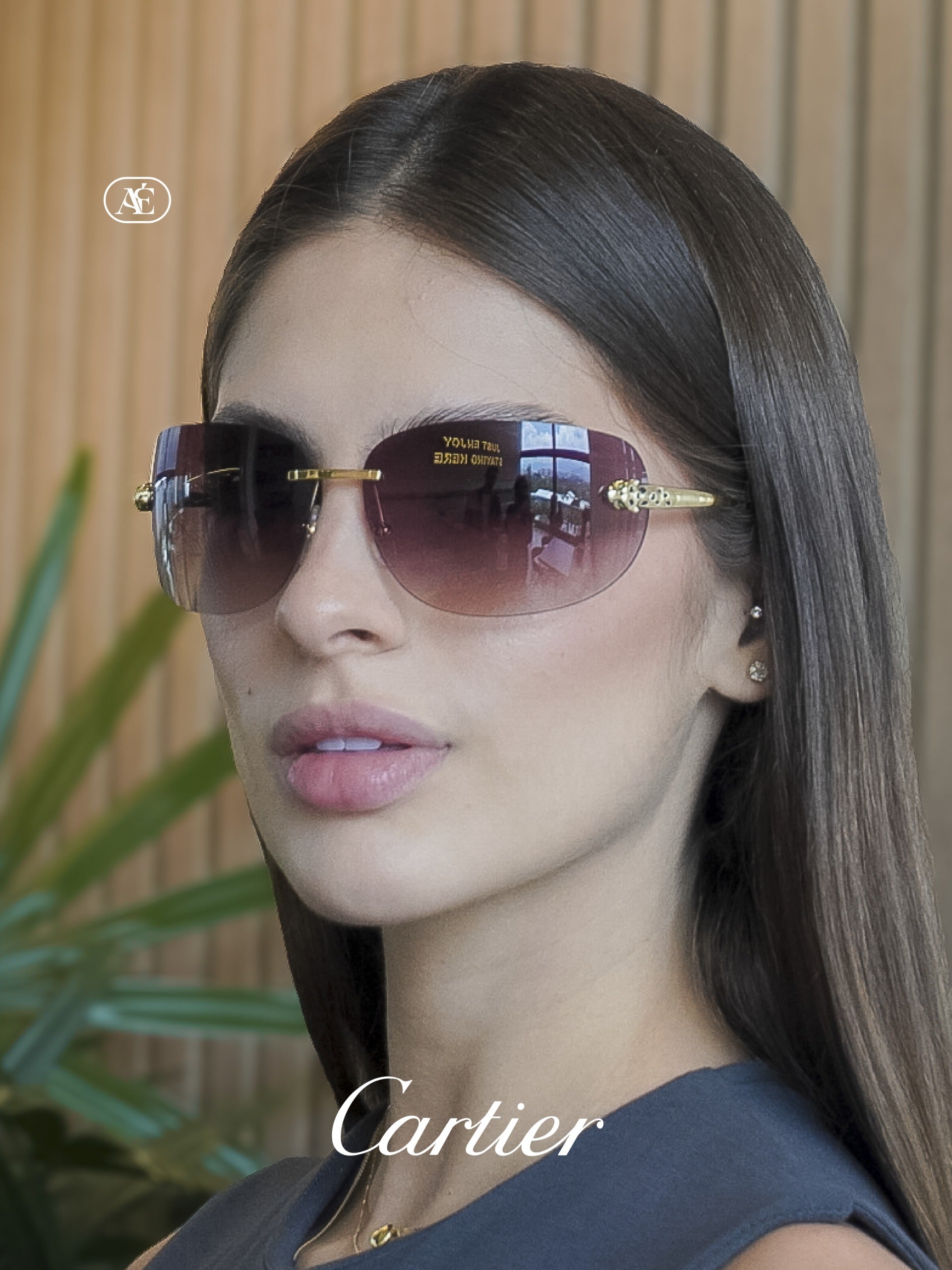 Las gafas de sol Cartier modelo CT0266S presentan un diseño unisex de estilo aviador, caracterizado por su elegancia y detalles refinados. La montura metálica en acabado dorado complementa los lentes Violeta, ofreciendo una combinación sofisticada y atemporal.
