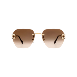 Descubre la elegancia contemporánea de estas gafas de sol unisex estilo aviador sin montura, que combinan lujo y comodidad. Con montura metálica dorada, detalles "C Décor" distintivos y lentes marrón degradado que ofrecen protección visual óptima. Medidas ideales (58-17-145 mm) para un ajuste cómodo y estilizado. Perfectas para un look sofisticado y funcional, ya sea en la ciudad o al aire libre.