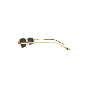 Las varillas presentan un acabado perforado tipo panther motif que aporta identidad y exclusividad, mientras que las lentes cuadradas en tono oscuro ofrecen una protección visual impecable con una estética moderna y muy elegante.