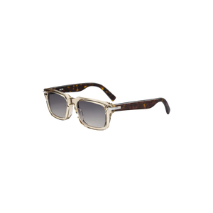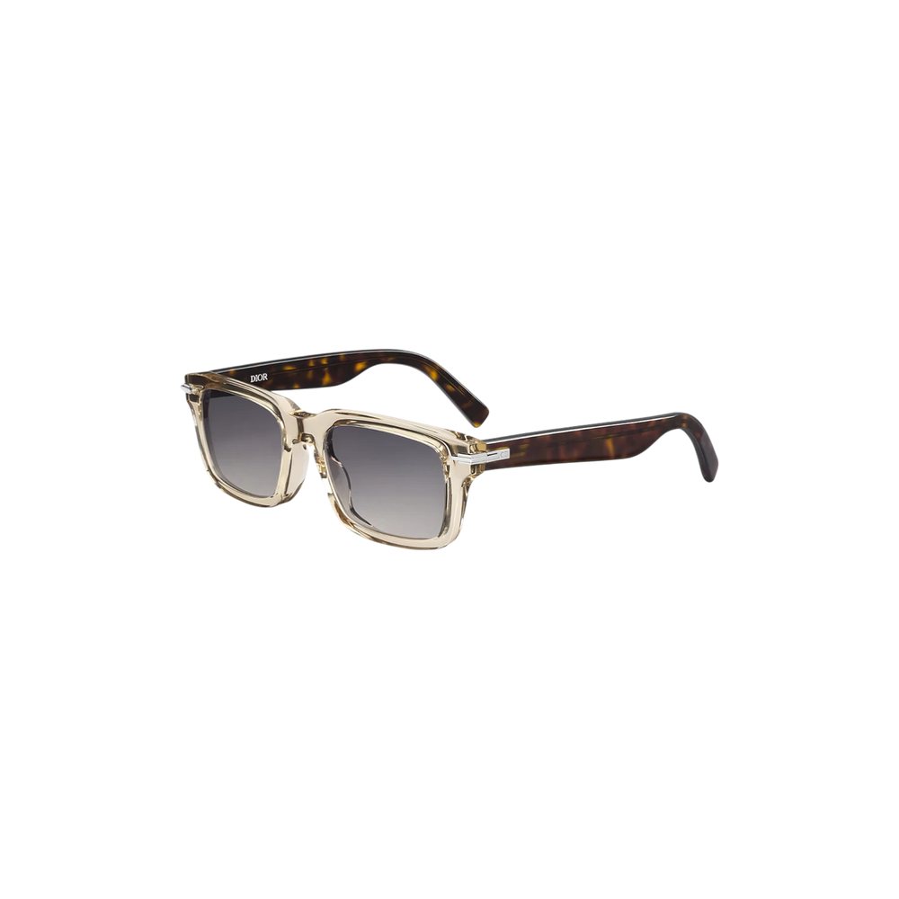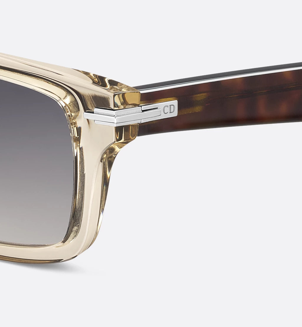 Las gafas de sol Dior BlackSuit S16I reinterpretan la elegancia masculina con un diseño rectangular contemporáneo. Su montura combina un frente en acetato translúcido beige con varillas efecto carey, logrando un contraste sofisticado que refleja la esencia de la sastrería Dior.