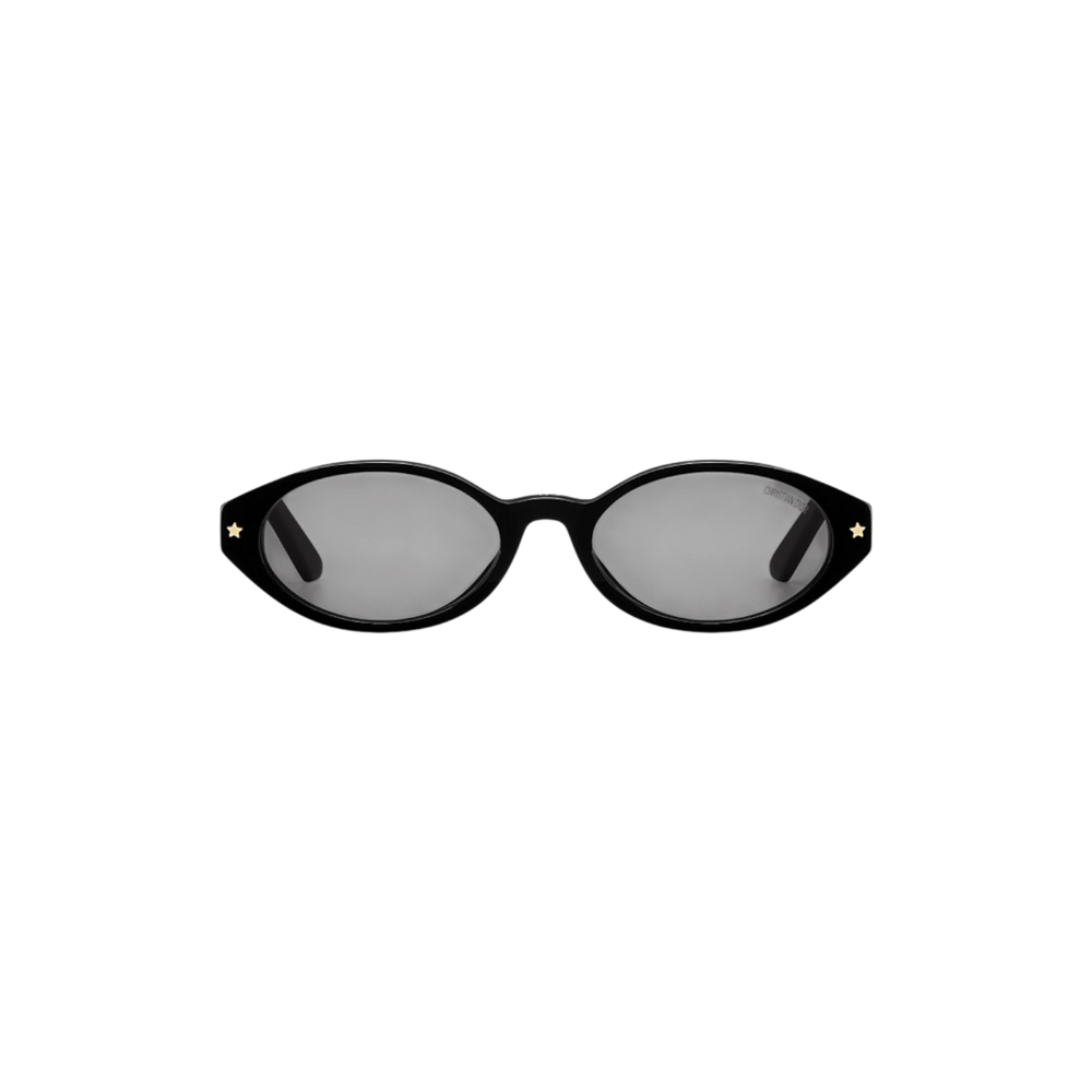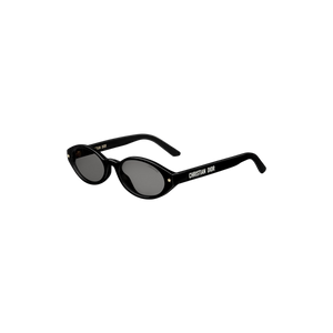 Elegancia contemporánea en una montura ovalada de acetato negro brillante, con detalles en dorado y la firma Dior en las varillas. Sus lentes de 54 mm ofrecen protección UV categoría 3 y un estilo femenino icónico, fabricado en Italia con la calidad y sofisticación de la maison Dior.