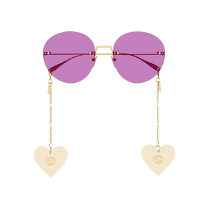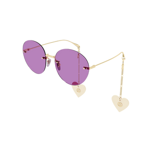 Destaca el detalle decorativo de una pequeña cadena metálica desmontable con charms (flores o corazones con el logo “GG”) colgando de las patillas, que añade un toque juguetón y distintivo . Las plaquetas nasales de silicona ajustables y las líneas suaves consiguen un calce estable incluso durante uso prolongado, mientras que los materiales (montura metálica + lentes de nylon) ofrecen resistencia sin sacrificar estilo