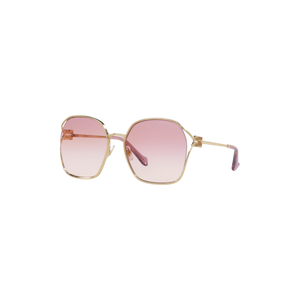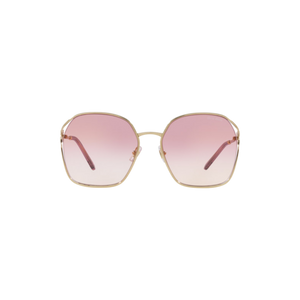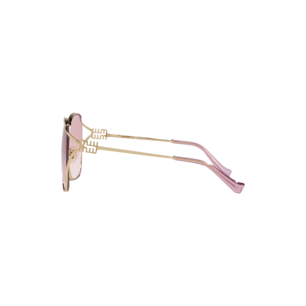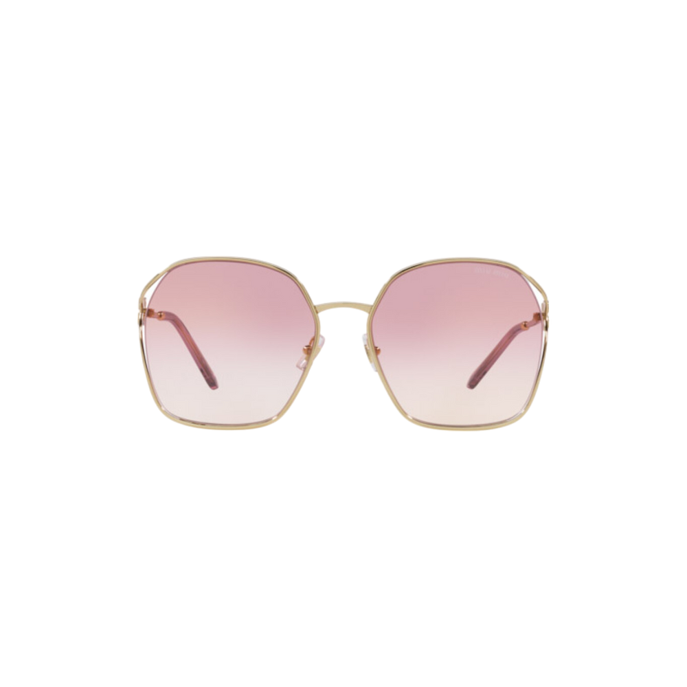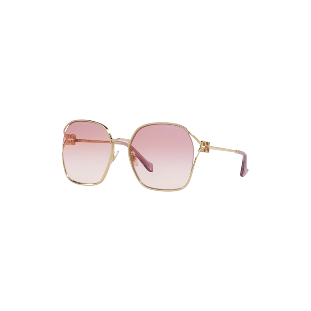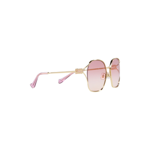 Las gafas de sol Miu Miu modelo MU52WS presentan un diseño de forma irregular con una montura de metal dorado y lentes rosas, ofreciendo una estética moderna y sofisticada. Estas gafas son ideales para ocasiones casuales y formales, aportando un toque de distinción a cualquier atuendo.
