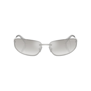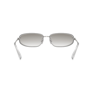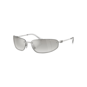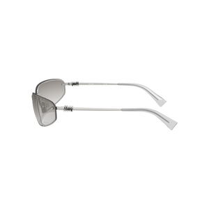 Gafas de Sol Miu Miu MUA50S – plateadas XL con lentes degradadas gris y espejo. Diseño ovalado envolvente de metal ligero, con detalles premium: almohadillas ajustables, puntas de acetato y logo vertical. Elegancia futurista y calidad italiana, autenticidad y garantía incluida.