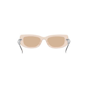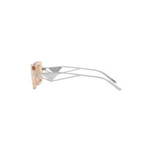 Las gafas de sol Prada PR14YS - 19M4I2 combinan elegancia y modernidad con un diseño rectangular de acetato en color beige cristalino. Sus lentes marrones claras ofrecen protección UV, mientras que las varillas metálicas doradas incorporan el distintivo logotipo triangular de Prada.