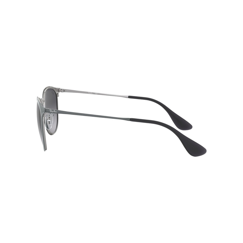 Las gafas de sol Ray‑Ban Erika Metal RB3539 (192/8G – 54) reinterpretan el clásico modelo “Erika” con una montura completa de metal en tono gris metálico mate y diseño phantos con puente tipo “keyhole” que brinda un toque retro-chic. Su contorno redondeado, ultradelgado y ligero está realzado por varillas metálicas finas rematadas con terminales de elastómero negro, asegurando comodidad y ligereza durante todo el día