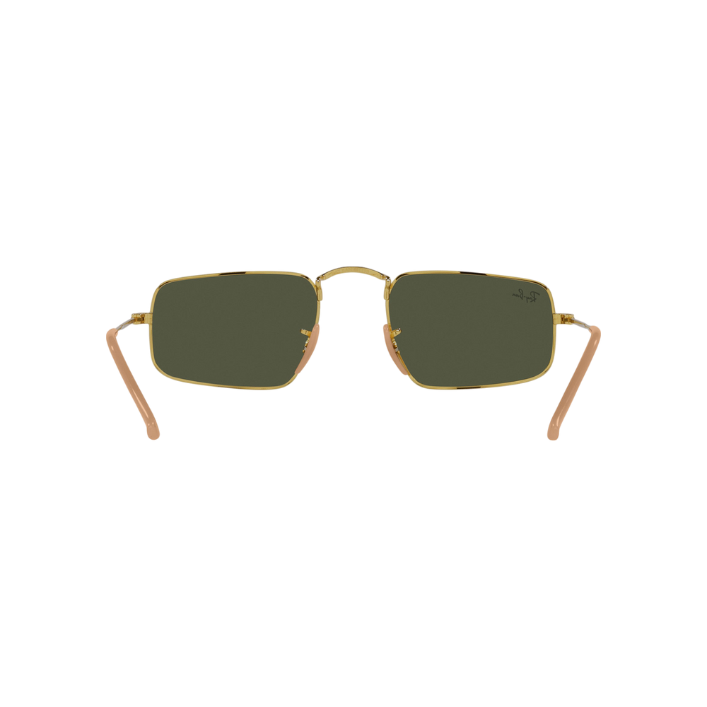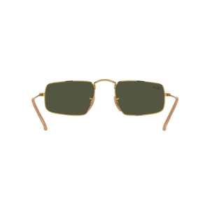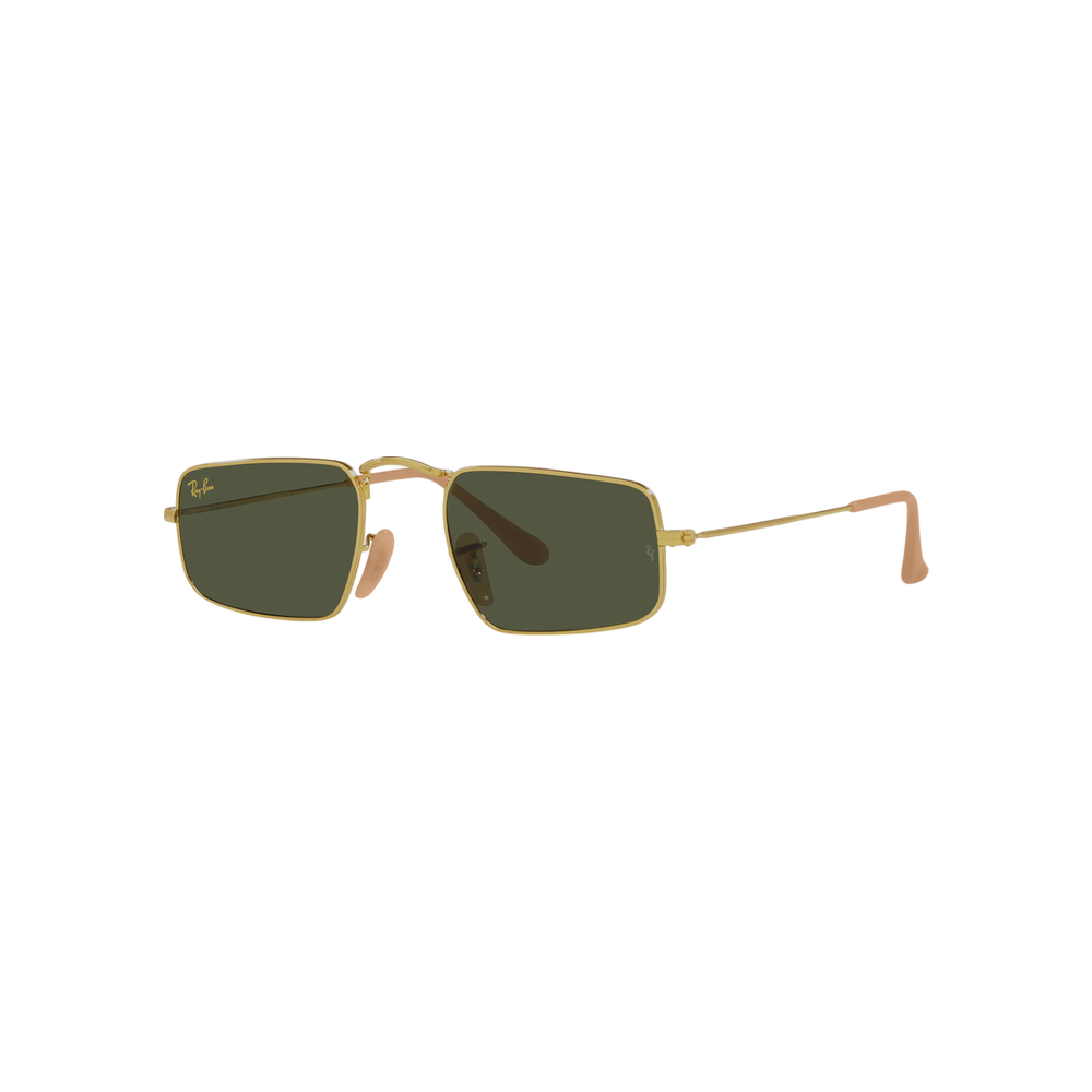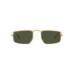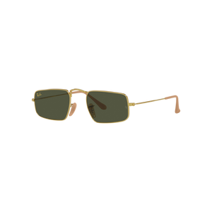 Las gafas de sol Ray-Ban modelo Julie RB3957 (referencia 9196/31) presentan un diseño rectangular con suaves líneas irregulares que aportan un carácter distintivo y femenino. Su montura metálica en tono dorado (Arista) es ligera, elegante y atraviesa los laterales con varillas finas rematadas en detalles metálicos. Los lentes clásicos G‑15 en color verde ofrecen protección UV 100 % (UVA/UVB) con filtro solar categoría 3 y están fabricados en cristal, garantizando una visión clara y confortable en entornos soleados