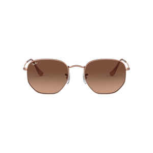 Estas gafas de sol Ray‑Ban RB3548N (código 9069A5) ofrecen un diseño geométrico hexagonal refinado, inspirado en lo retro pero con una estética moderna. Fabricadas con montura completa de metal pulido cobre (copper) ultraligero (~29 g), destacan sus perfiles delgados y doble barra en el puente, que otorgan elegancia sin peso.