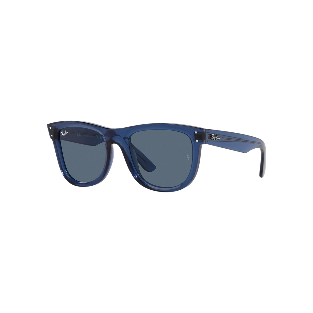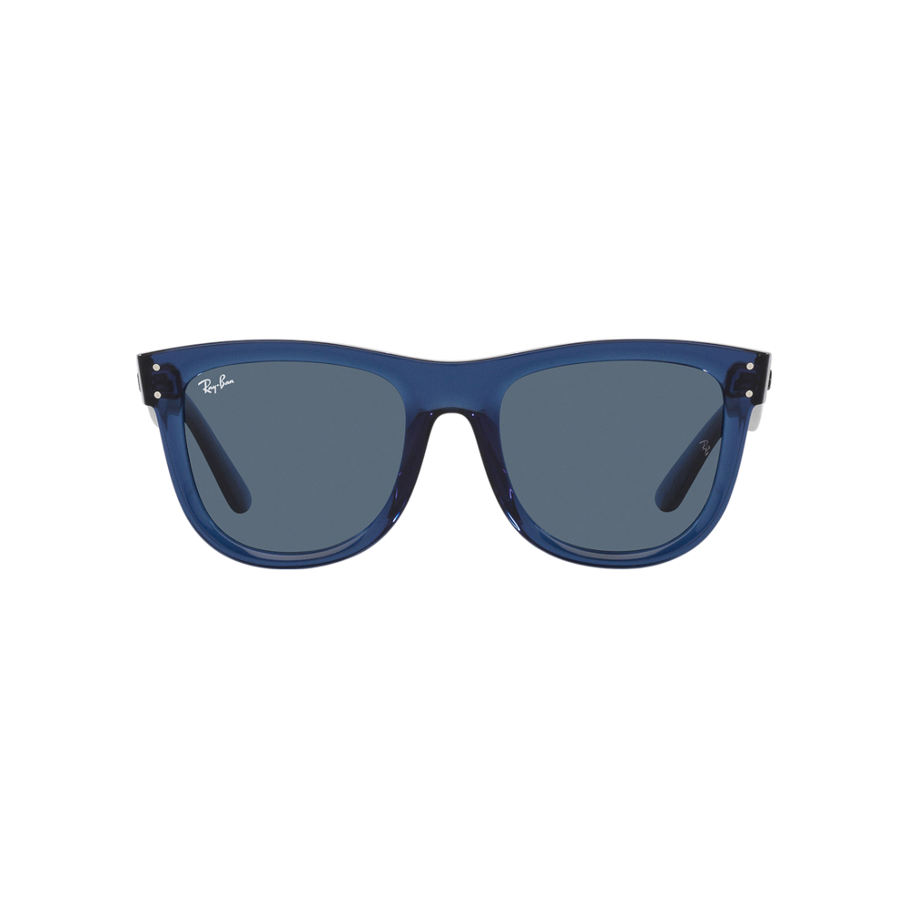 Las gafas de sol Ray-Ban Wayfarer Reverse RBR0502S 67083A en color azul transparente ofrecen un diseño innovador y moderno. Su montura cuadrada de acetato moldeado proporciona ligereza y resistencia, mientras que las lentes de nailon biológico azul oscuro no son polarizadas pero brindan una protección UV400 eficaz. Estas gafas unisex son ideales para quienes buscan un estilo distintivo y contemporáneo, adaptándose perfectamente a diversas ocasiones y estilos personales.
