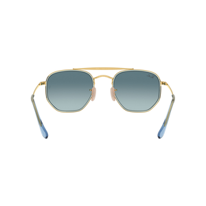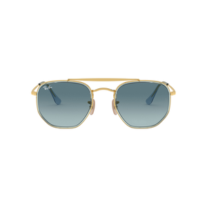 Las gafas de sol Ray-Ban RB3648M - 91233M, conocidas como The Marshal II, presentan un diseño geométrico distintivo con una montura metálica dorada que aporta un estilo sofisticado y moderno. Los lentes en degradado azul/gris ofrecen una estética elegante y brindan protección UV completa, ideales para proteger la vista en exposiciones prolongadas al sol. Este modelo unisex es perfecto para complementar tanto atuendos casuales como formales, manteniendo el estilo icónico de Ray-Ban.