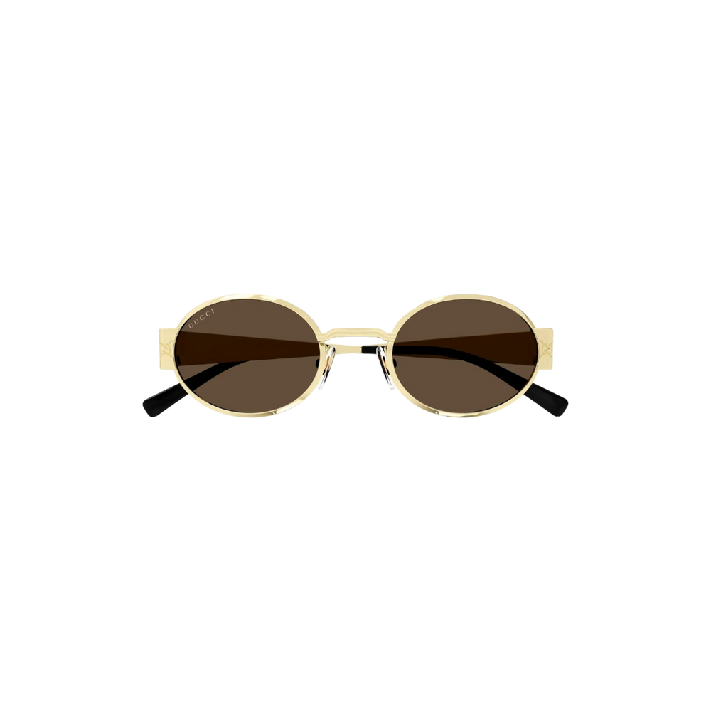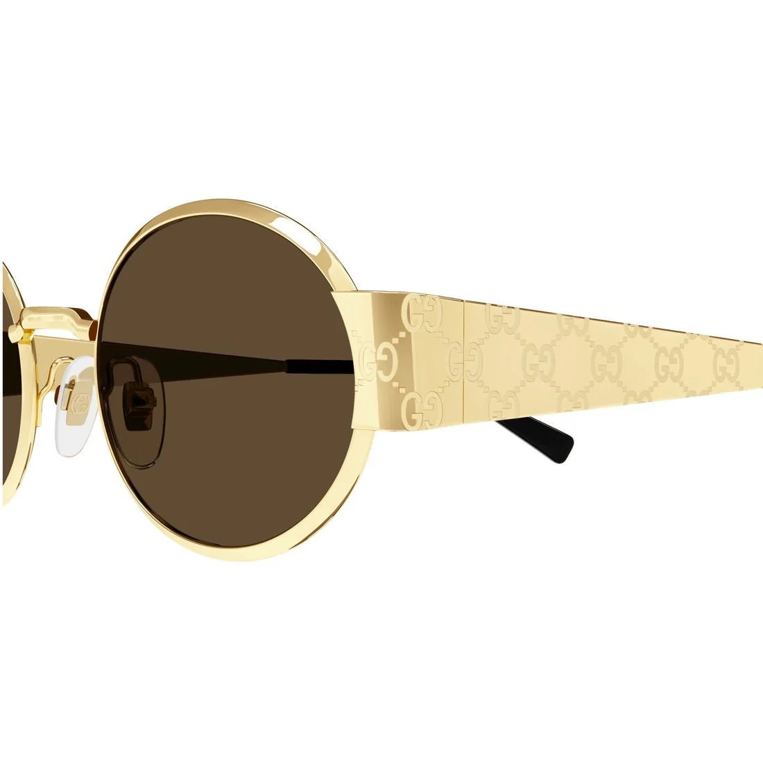 Las Gucci GG1854S 00551 son una expresión de estilo contemporáneo con el sello clásico de la marca italiana. Su montura metálica en tono dorado, de diseño redondo y delgado, aporta un aire sofisticado y ligero. Las lentes en color marrón sólido realzan la calidez del rostro y ofrecen una protección total contra los rayos UV. Un modelo unisex que combina elegancia, confort y versatilidad, ideal para quienes valoran los detalles y la autenticidad en cada accesorio.