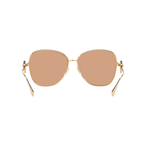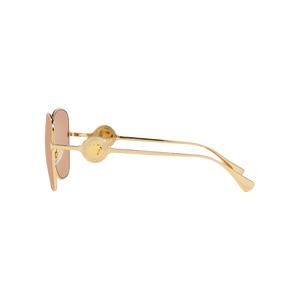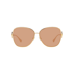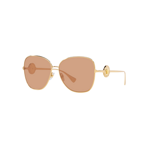 Las gafas de sol Versace VE2256 10027D60 presentan un diseño sobredimensionado de tipo mariposa en metal dorado, con una estructura elegante y atrevida que incluye doble puente y plaquetas nasales ajustables. Su montura metálica de alta calidad aporta un acabado sofisticado con el detalle icónico de la Medusa en las sienes, reflejando la esencia de la marca