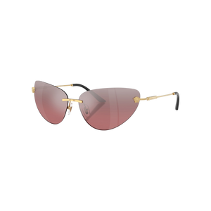 Estas gafas de sol Versace modelo VE 2281 (código 10027E 64) presentan una silueta cat‑eye sin montura que combina elegancia y ligereza. Su estructura metálica dorada, sumada al puente doble y varillas finas, ofrece un perfil sofisticado, mientras los lentes espejados en rosa degradado (pink mirror silver gradient) aportan un toque femenino y moderno. El diseño incorpora discretos remates con la cabeza de Medusa y herrajes cilíndricos que encierran el mecanismo de las varillas, realzando su estética de lujo.