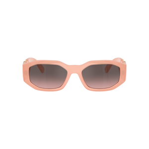 Estas gafas de sol Versace modelo VE4361 (código 539258 53) presentan una silueta irregular y moderna, combinando estética contemporánea con funcionalidad premium. Fabricadas en acetato/nylon de gran calidad, lucen una montura completa en tono nude opal, complementada con lentes en rosa degradado – gris flash – plateado que garantizan protección UV 100 % (categoría 3) sin polarización