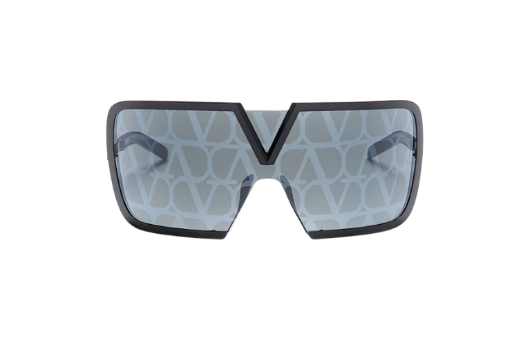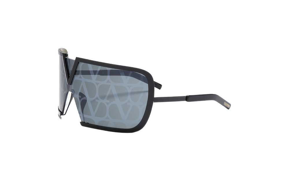 Valentino V-Romask VLS-120D-146 son gafas de sol estilo mask / shield con un diseño futurista y envolvente. Su estructura de titanio negro (“black iron”) ofrece una gran ligereza y resistencia, mientras que el puente presenta el icónico logo “V” en acabado suave. Las varillas son de titanio con terminaciones en acetato japonés para mayor comodidad. Las lentes, de color gris oscuro con efecto espejo flash y patrón monograma sutil, ofrecen una estética moderna y protección UV total. El modelo está diseñado como unisex y es apto para uso con lentes graduadas.
