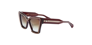 Las Valentino V-Grace VLS-126B 54 son gafas de sol que fusionan feminidad y carácter con un diseño cat-eye de impacto. Su montura en acetato rojo vino, complementada con detalles dorados, aporta sofisticación y presencia. Las lentes marrón degradado aseguran una estética cálida y moderna, además de brindar protección solar eficaz. El formato de 54 mm está pensado para rostros medianos, ofreciendo equilibrio entre estilo y comodidad, mientras que la construcción robusta asegura durabilidad sin sacrificar elegancia.