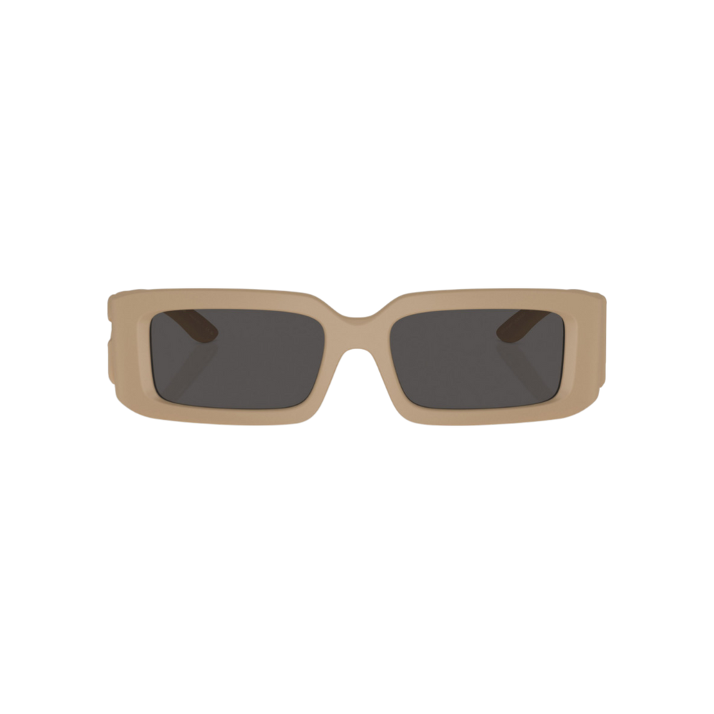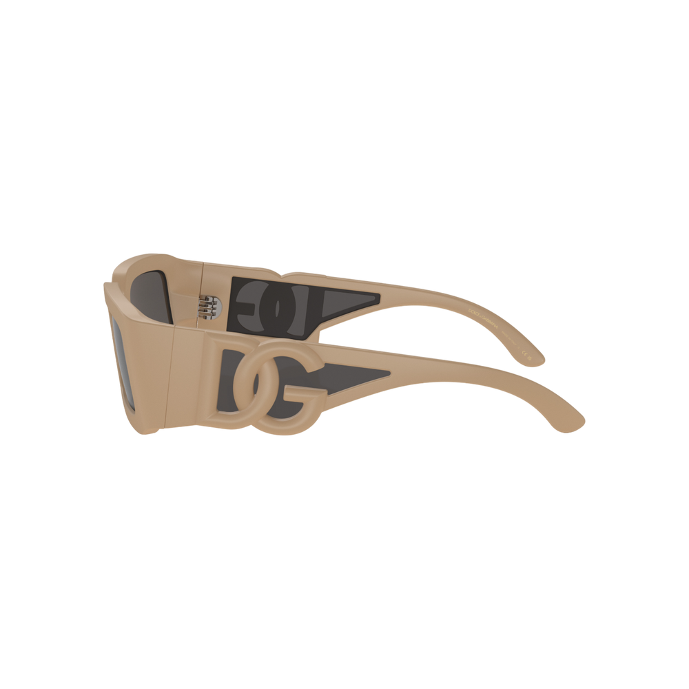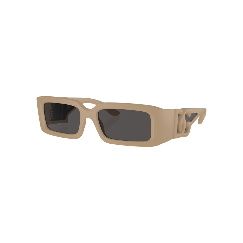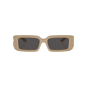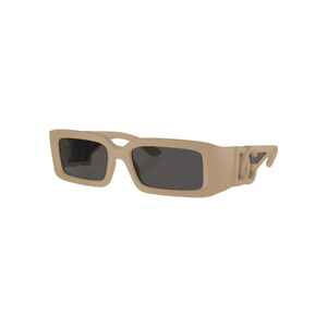 La Dolce & Gabbana DG6197 329/287 53 (también conocido como DG6197 código 329287, talla 53‑17‑130) presenta un diseño rectangular unisex con montura de nylon e inyección en acabado beige mate con textura “rubberized”, lentes gris oscuro categoría 3 (protección UV400), sin polarización ni efecto espejo.