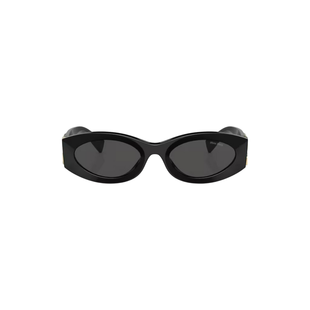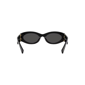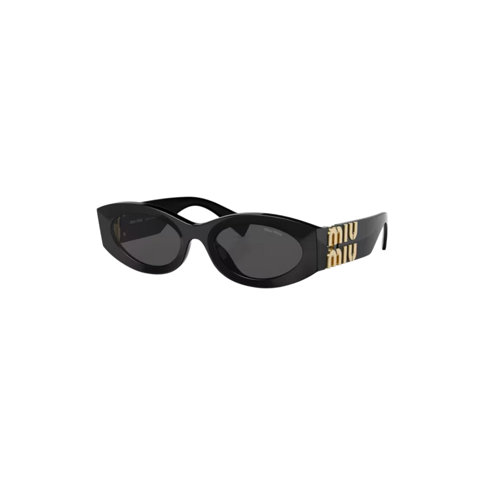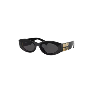 Las gafas de sol Miu Miu modelo MU11WS presentan un diseño ovalado con una montura de acetato negro y lentes grises oscuros, ofreciendo una estética moderna y sofisticada. Estas gafas son ideales para ocasiones casuales y formales, aportando un toque de distinción a cualquier atuendo.