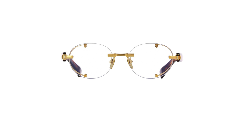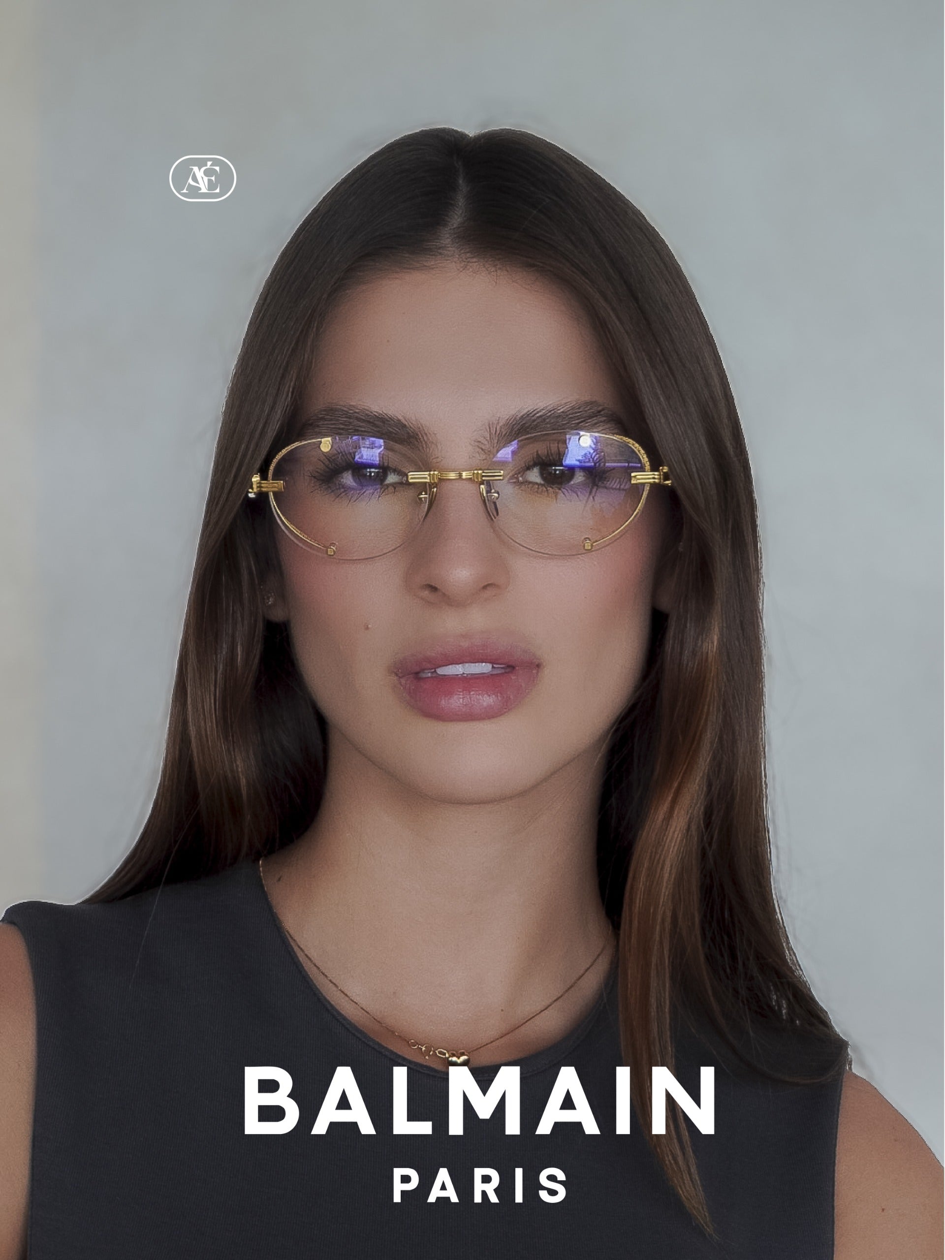 Las Balmain Monsieur BPX-153C-53 son un armazón óptico sofisticado que refleja la elegancia parisina característica de la maison. Su diseño rimless (sin montura frontal) aporta ligereza visual y comodidad, mientras que las varillas metálicas en acabado dorado con detalles en marrón refuerzan el estilo exclusivo de la marca.