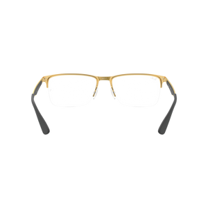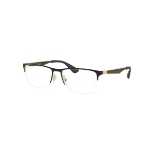 Las gafas ópticas Ray-Ban RX6335 - 2890 56 presentan un diseño rectangular semiautomático con una montura metálica en color negro pulido con detalles dorados, ofreciendo un estilo moderno y sofisticado. Este modelo unisex es ideal para quienes buscan una apariencia elegante y versátil, adecuada para diversas ocasiones.