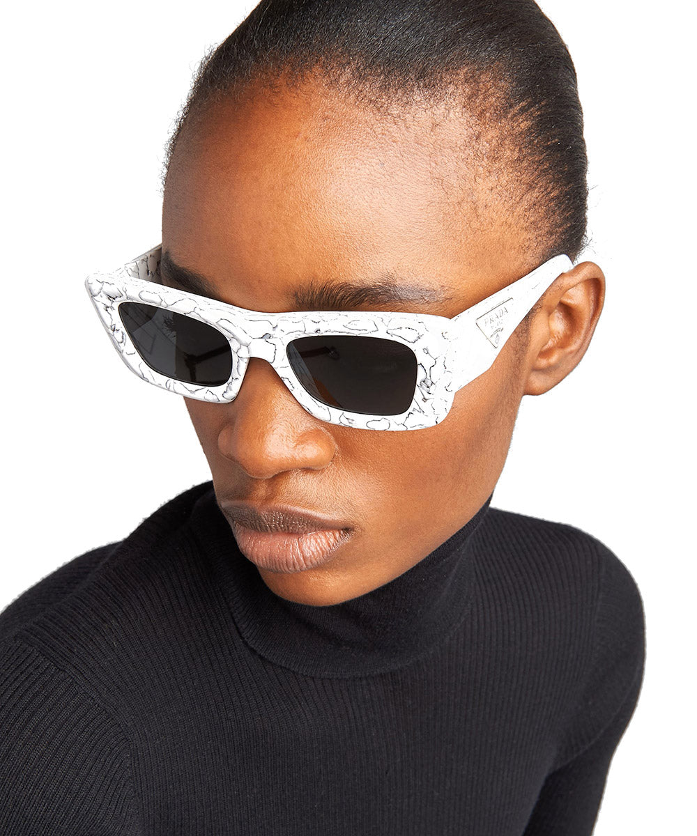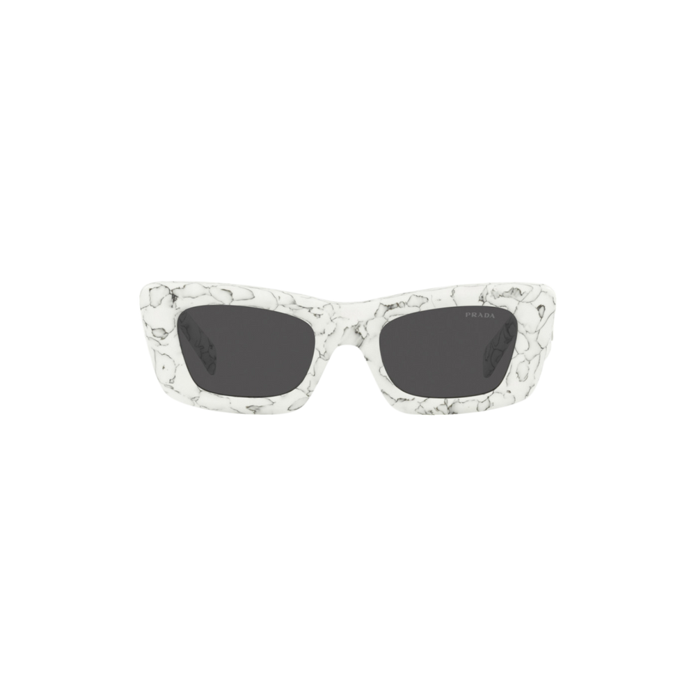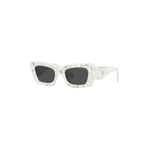 Las gafas de sol Prada PR13ZS - 17D5S0 destacan por su diseño audaz y sofisticado. Con una montura de acetato en color blanco mármol mate y lentes grises oscuras, ofrecen una estética moderna y elegante. Su forma rectangular y detalles distintivos, como el logotipo triangular de Prada en las varillas, las convierten en un accesorio de moda imprescindible para quienes buscan un estilo contemporáneo y refinado