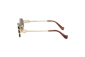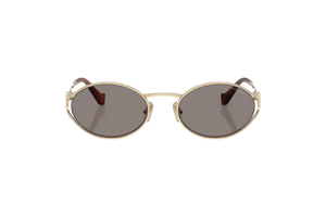 Las Miu Miu MU52YS ZVN80Q54 son una obra de arte en forma de gafas. Su diseño ovalado, con montura metálica dorada y varillas en tono habano, combina la sofisticación retro con el espíritu vanguardista de Miu Miu. Las lentes color marrón oscuro aportan una estética elegante y misteriosa, ofreciendo una protección solar completa con estilo distintivo. Un accesorio ideal para mujeres que disfrutan del lujo con carácter y originalidad.