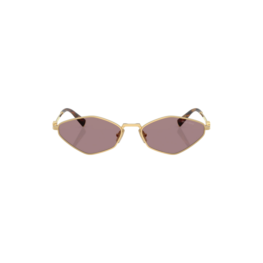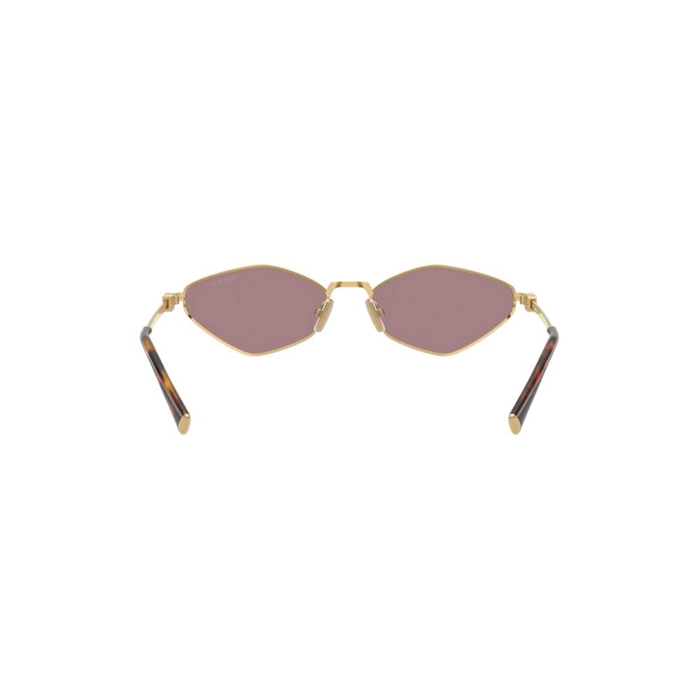 Las gafas de sol Miu Miu modelo MU56ZS - 5AK20I56 presentan un diseño geométrico distintivo con una montura metálica en tono dorado que aporta sofisticación y modernidad.