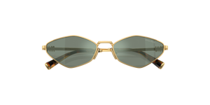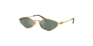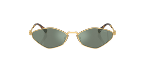 Las MIU MIU MU56ZS reinterpretan la silueta geométrica con un enfoque moderno, sofisticado y de alto impacto visual. Su estructura metálica dorada, combinada con lentes verdes, crea un contraste de lujo que eleva cualquier look. El detalle icónico MIU MIU en las bisagras aporta un toque arquitectónico distintivo, haciendo de este modelo una pieza llamativa, fresca y audaz.