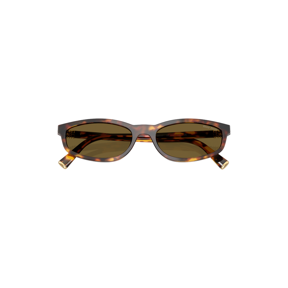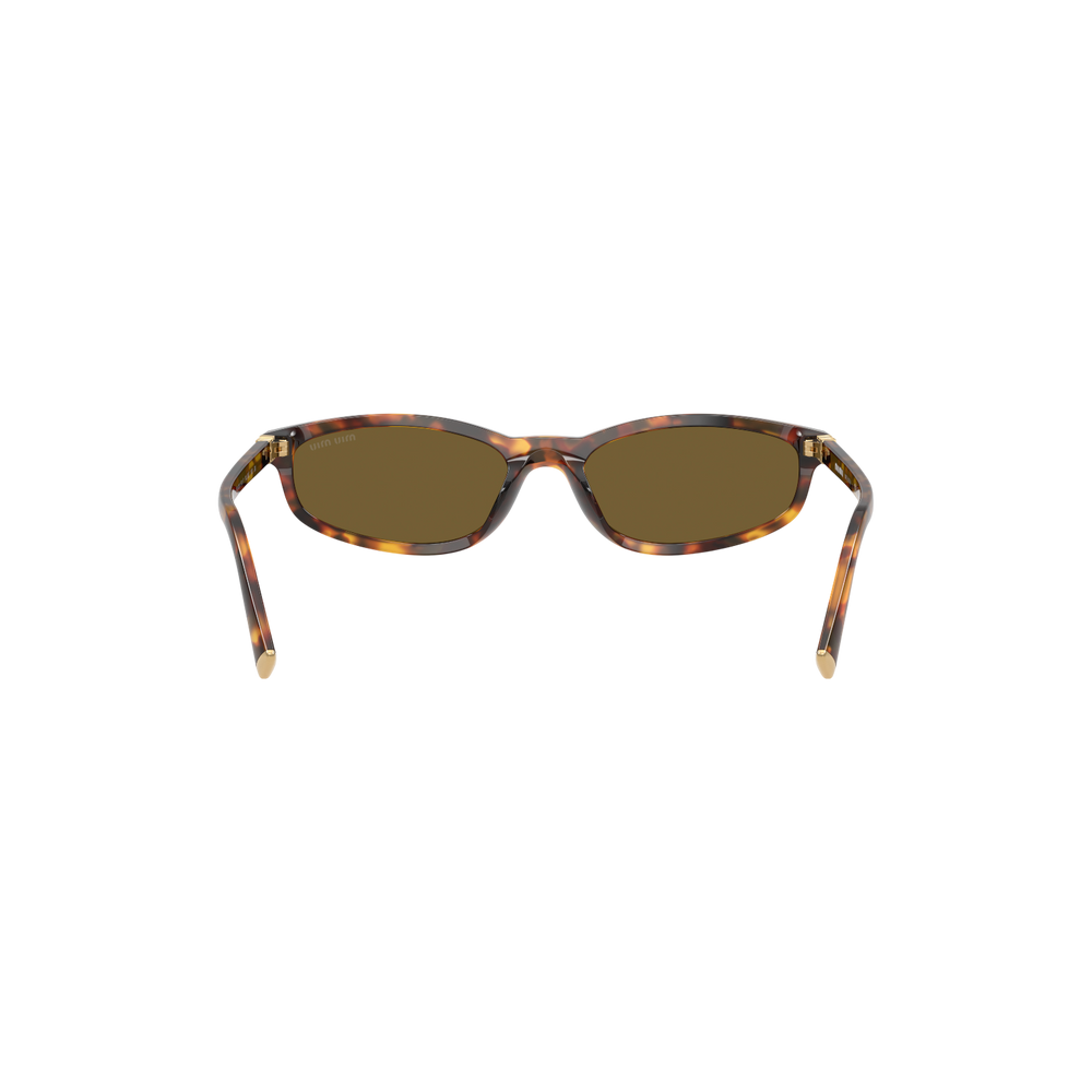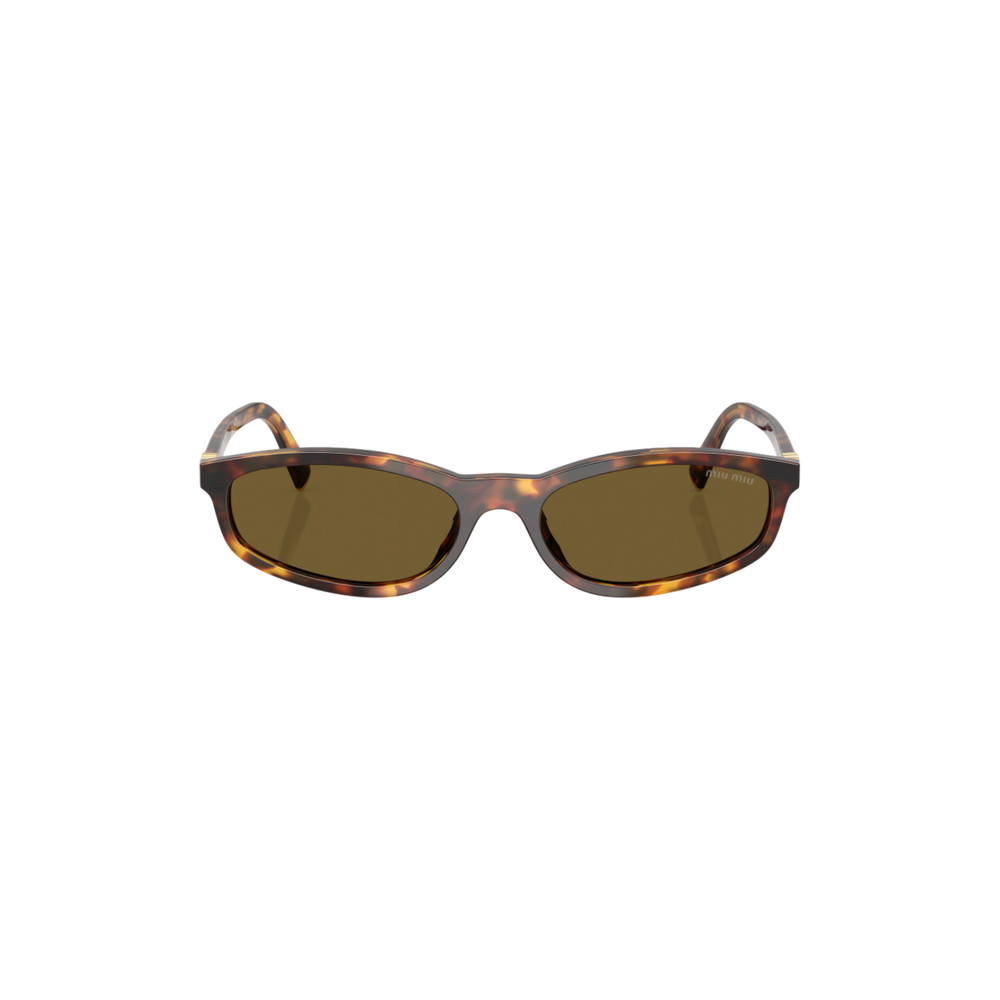 Las gafas de sol Miu Miu modelo MUA06S - 14L09Z54 destacan por su diseño geométrico y sofisticado, confeccionadas en acetato de alta calidad en tono carey que aporta un toque de elegancia y modernidad.