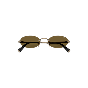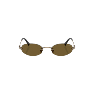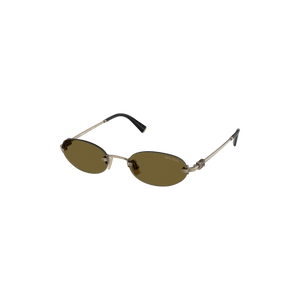 Las gafas de sol Miu Miu modelo MUA54S - 26C09Z51 presentan un diseño ovalado sin montura, confeccionadas en metal dorado que aporta un toque de sofisticación y modernidad. Las lentes marrones ofrecen una protección óptima contra los rayos UV, siendo ideales para condiciones de luz suave. Este modelo es perfecto para quienes buscan un accesorio elegante y contemporáneo, adecuado tanto para ocasiones casuales como formales. Su diseño atemporal se adapta a diversas temporadas y estilos personales.