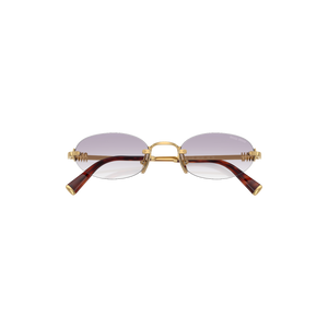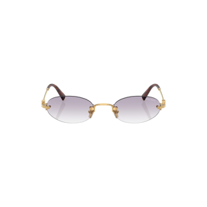 Las gafas de sol Miu Miu modelo MUA54S - 5AK04O51 presentan un diseño ovalado sin montura, confeccionadas en metal dorado que aporta un toque de sofisticación y modernidad. Las lentes en tonos gris oscuro ofrecen una protección óptima contra los rayos UV, siendo ideales para condiciones de luz intensa. Este modelo es perfecto para quienes buscan un accesorio elegante y contemporáneo, adecuado tanto para ocasiones casuales como formales. Su diseño atemporal se adapta a diversas temporadas y estilos personales.