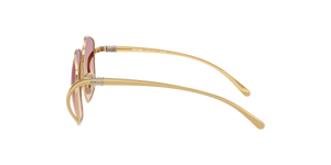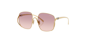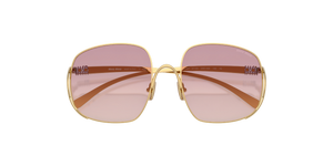 Las MIU MIU MUA57S en el color 5AK40S elevan la estética glam con una interpretación ultra femenina de la silueta oversize. Su estructura metálica dorada enmarca unas lentes rosa degradado que aportan luminosidad suave y un efecto delicado en el rostro. El icónico detalle metálico MIU MIU en las bisagras añade carácter arquitectónico y lujo contemporáneo, creando una pieza llamativa, sofisticada y absolutamente fashion.