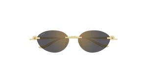 as Cartier Panthère CT0504S-001 58 son gafas de sol que encarnan la feminidad y el lujo característico de la Maison Cartier. Su diseño cat-eye rimless combina delicadeza y fuerza, resaltado por el acabado metálico dorado que aporta sofisticación. La icónica pantera se integra en las varillas como un detalle distintivo, reafirmando su pertenencia a la colección Panthère de Cartier. Sus lentes en tono gris equilibran estilo y protección, convirtiéndolas en un accesorio atemporal y elegante.