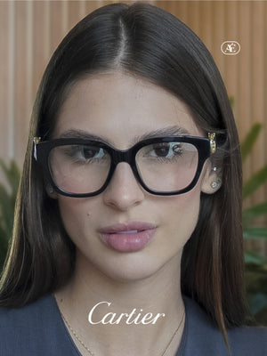 Las Cartier Panthère CT0566O 00553 representan una versión contemporánea del icónico estilo Panthère, combinando elegancia, carácter y funcionalidad. Su silueta soft square ofrece un diseño femenino y delicado, mientras que la montura completa en acetato reciclado se presenta con perfiles más delgados para aumentar la ligereza y comodidad al uso diario. El distintivo detalle Panthère C tridimensional, con puntos de esmalte hechos a mano, en las varillas aporta un sello joyero distintivo que eleva el carácter del diseño. El acabado en negro profundo (005) realza su versatilidad, y las lentes transparentes permiten la correcta adaptación óptica según tu graduación.