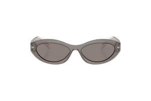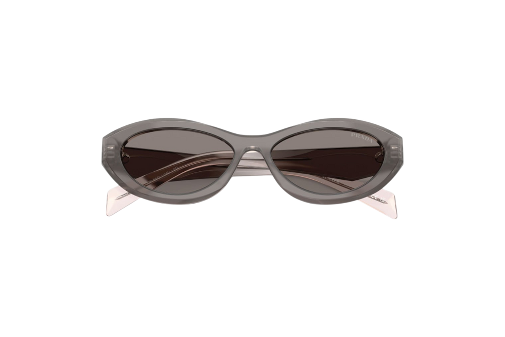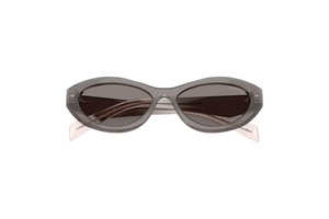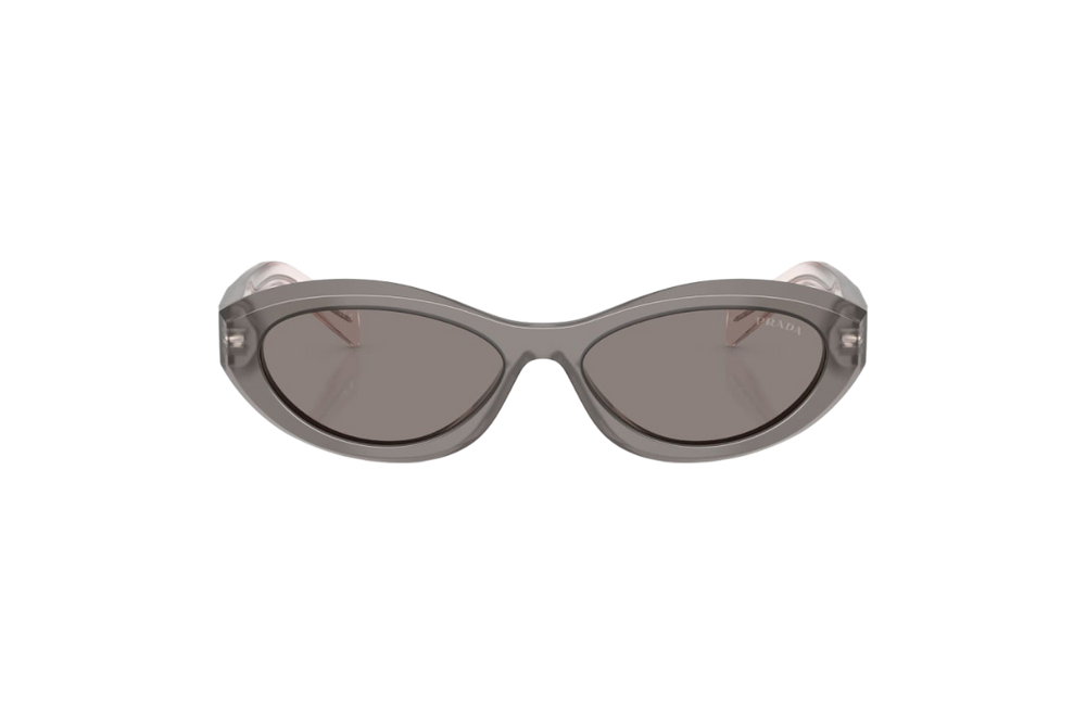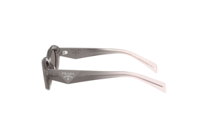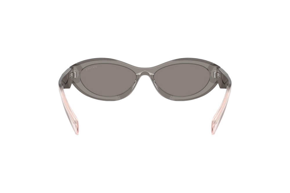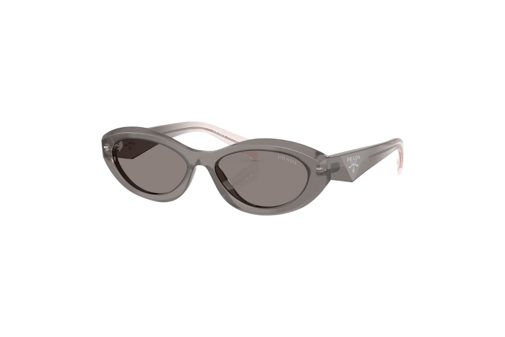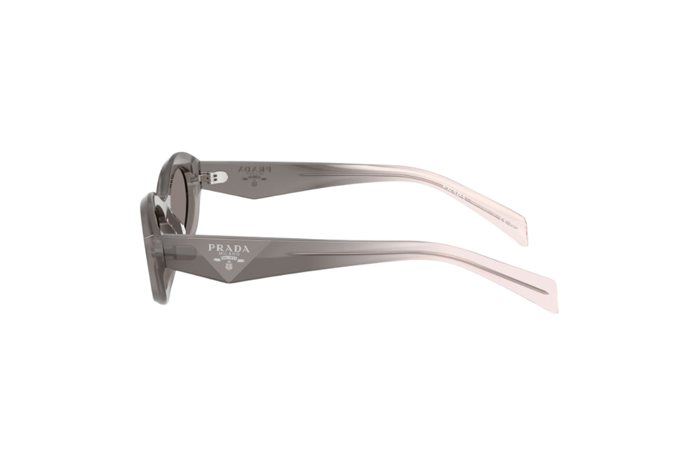Diseño vanguardista con esencia retro, inspirado en la estética italiana contemporánea. Estas gafas de sol Prada destacan por su montura ovalada en acetato color gris translúcido con varillas rosadas, creando un contraste moderno y elegante. Su forma envolvente realza las facciones y ofrece una apariencia sofisticada y atrevida.