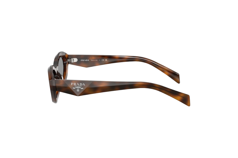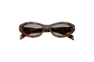 Un diseño sofisticado y contemporáneo que refleja la audacia creativa de Prada. Estas gafas destacan por su montura ovalada de acetato en color carey oscuro, realzada con lentes grises que aportan contraste y profundidad. Su estructura gruesa y líneas suaves evocan un estilo retro-moderno, ideal para quienes buscan elegancia con carácter.