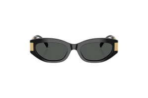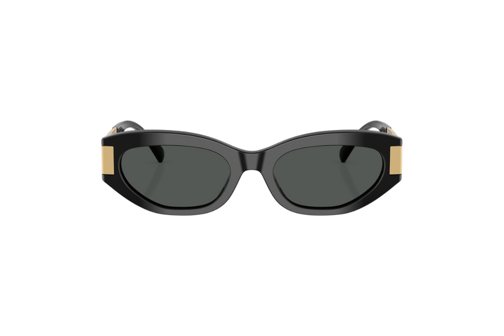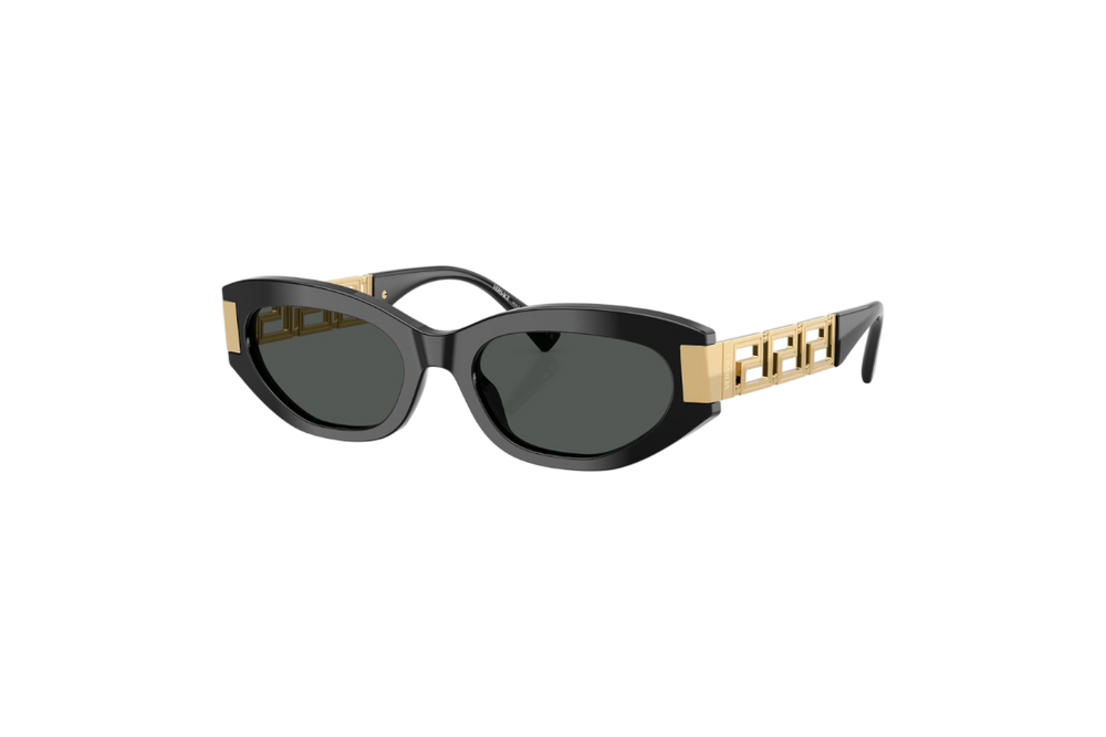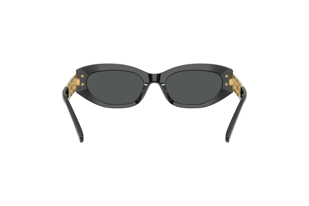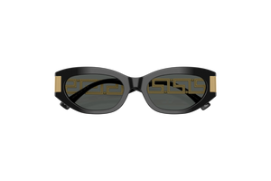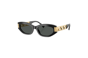 Las Versace VE4501 GB1/8754 son una obra maestra del diseño italiano. Con una estructura robusta en acetato negro y detalles metálicos dorados, estas gafas combinan la sensualidad de la forma ovalada con la fuerza icónica del diseño greca de Versace, creando un equilibrio perfecto entre glamour y audacia.